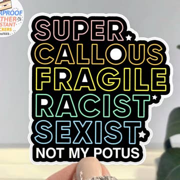 Made in United States Audience: Everyone Color: Multi-Colored Is Set: Individual Occasion Theme: Everyday Season: Year-Round Special Feature: Vinyl and Water Resistant Theme: Politics Tone: Funny Product Language: English Weight: 0.28 g (0.01 oz)