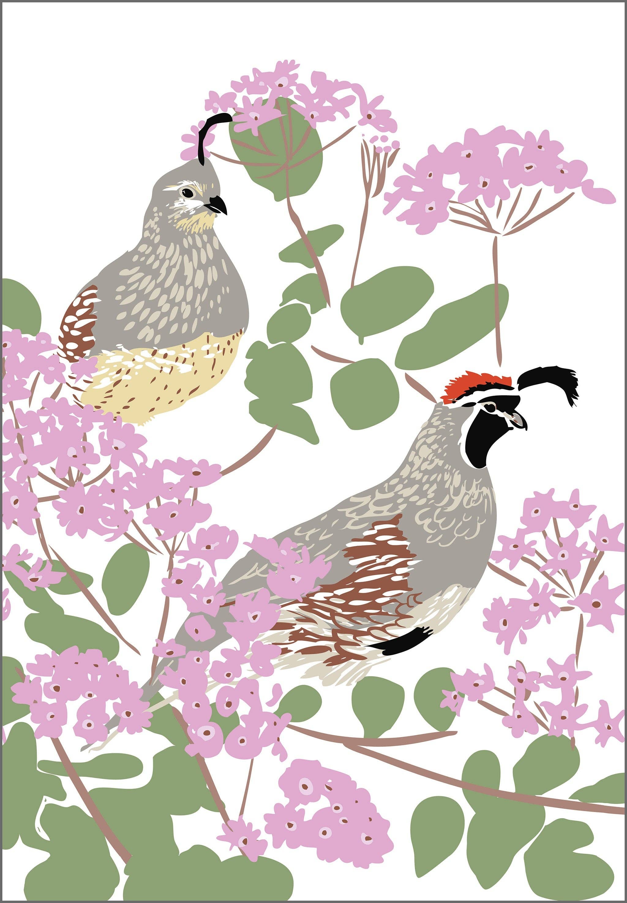 This illustrated postcard features an ode to the neighborhood chickens found across Portland Oregon. It features a barred Plymouth Rock chicken against a lime colored background. Yellow and green hand drawn banners reads "Greetings from Portland" above the chicken and "Oregon" below it. The back of each postcard features 3 address lines and the outline of Oregon to mark the spot for stamp placement in black and white. This postcard is printed in full color and measures 4 by 6 inches each. The front is glossy and the backside is matte, ideal for writing on.