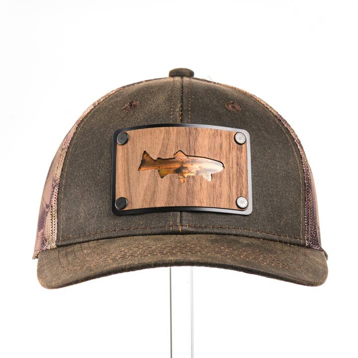Built for those who blend into the wild, this Richardson trucker hat in Kryptek Typhon camo is the perfect fusion of stealth and rugged craftsmanship. The real walnut wood patch is laser-etched with a detailed camo pattern and features a bold cut-out tines silhouette, symbolizing strength and the pursuit of the hunt. Layered over a black hexagon-shaped anodized aluminum plate, this design creates a striking contrast while maintaining an outdoor edge. Riveted for durability and coated for water resistance, this patch is made to withstand the elements. With a mid-profile fit, breathable mesh back, and adjustable snapback closure, this hat is built for hunters, outdoorsmen, and those who move with purpose.