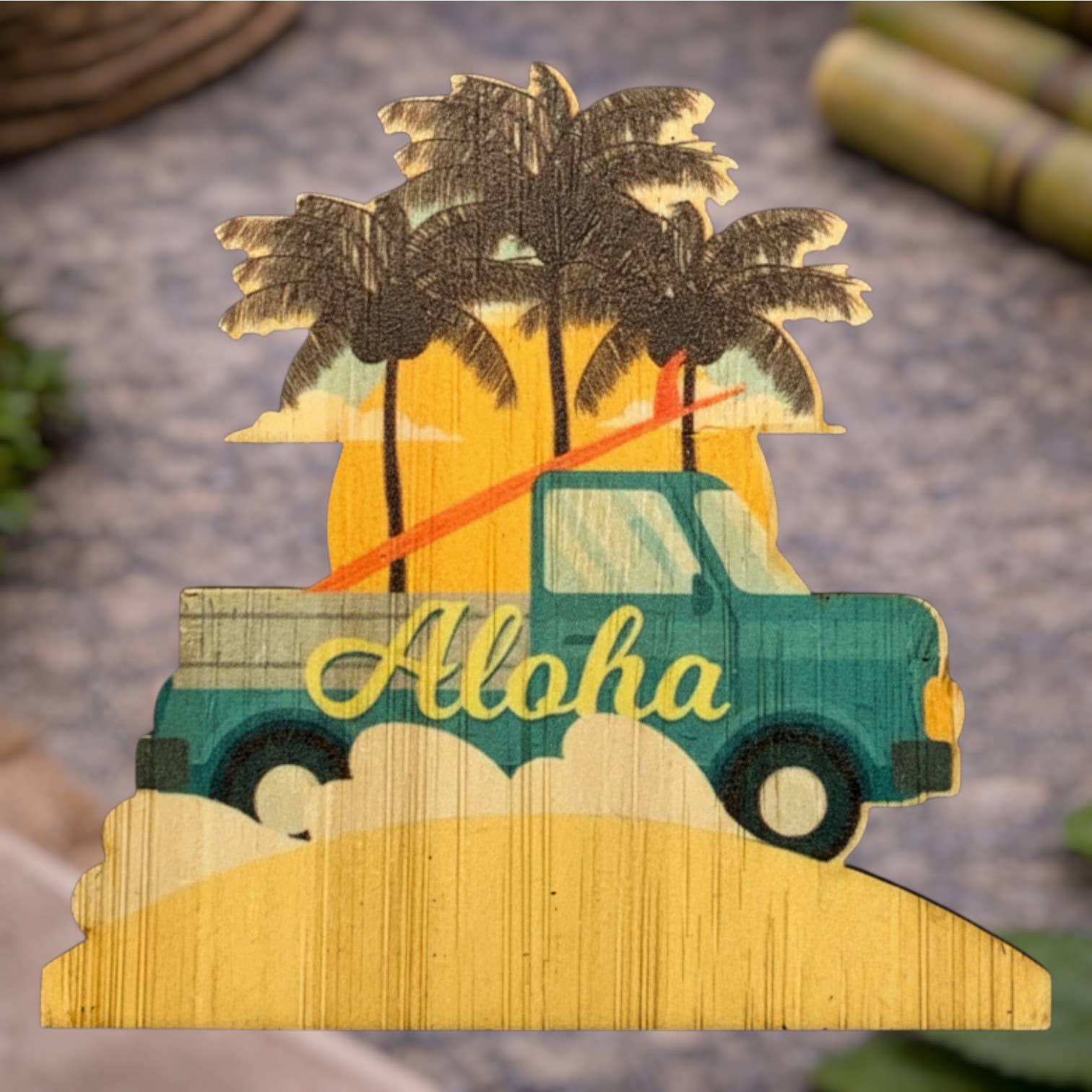 Our stickers are made with 100% Sustainable Bamboo. They are Eco-Friendly, Fade and Weather Resistant, backed with a 3M Water resistant adhesive, and approx. 3x3in. Due to the nature of the product, colors and appearance may vary.