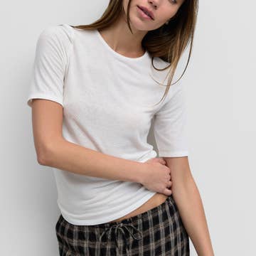 Knit Polyester Rayon Spandex Pointelle Ribbed Round Neck Short Sleeve Top (Optional Set Style# L8580, L8622, L8623, L8635)