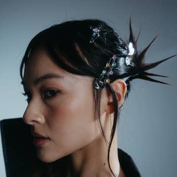 Inspired by the spine of a sting ray, this super modern and graphic comb with graduated clear Swarovski crystals gets to the epitome of our design hearts. Wear it dangling from a pony or running down your center part.