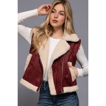 Wholesale Faux Suede Inner Fur Zip Up Vest