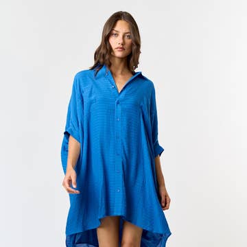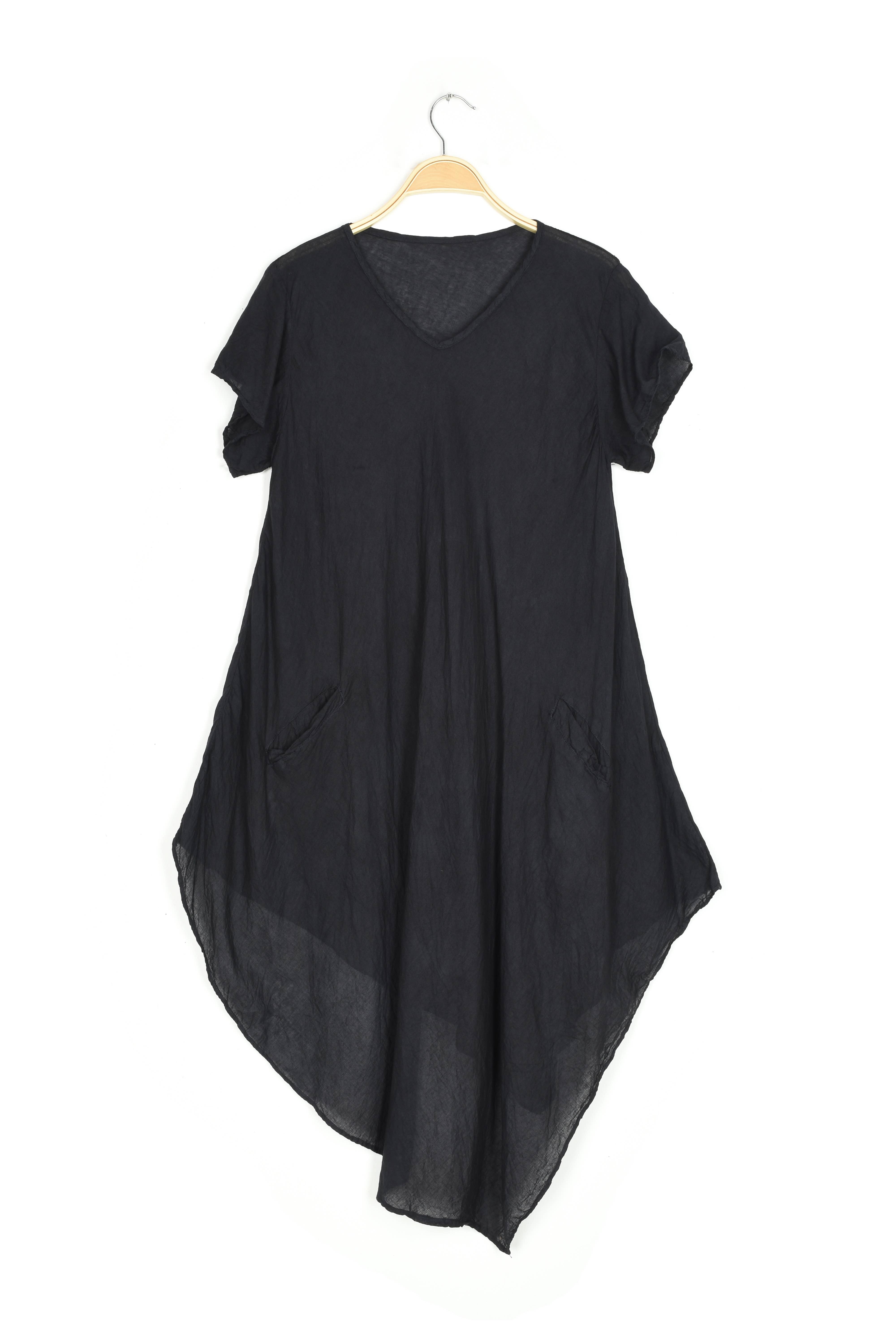 Fabric: 100% Cotton Seersucker Fabric Size: S/M, L/X Neckline: Low Scoop Sleeves: 3/4 Length Features: Asymmetrical Hemline, Bubble Shape on Both Sides of Dress Pockets: In Seam Side Pockets Care: Cold Water Wash Inside Out Low Heat Tumble Dry Or Hang To Dry COO: Handmade in Thailand