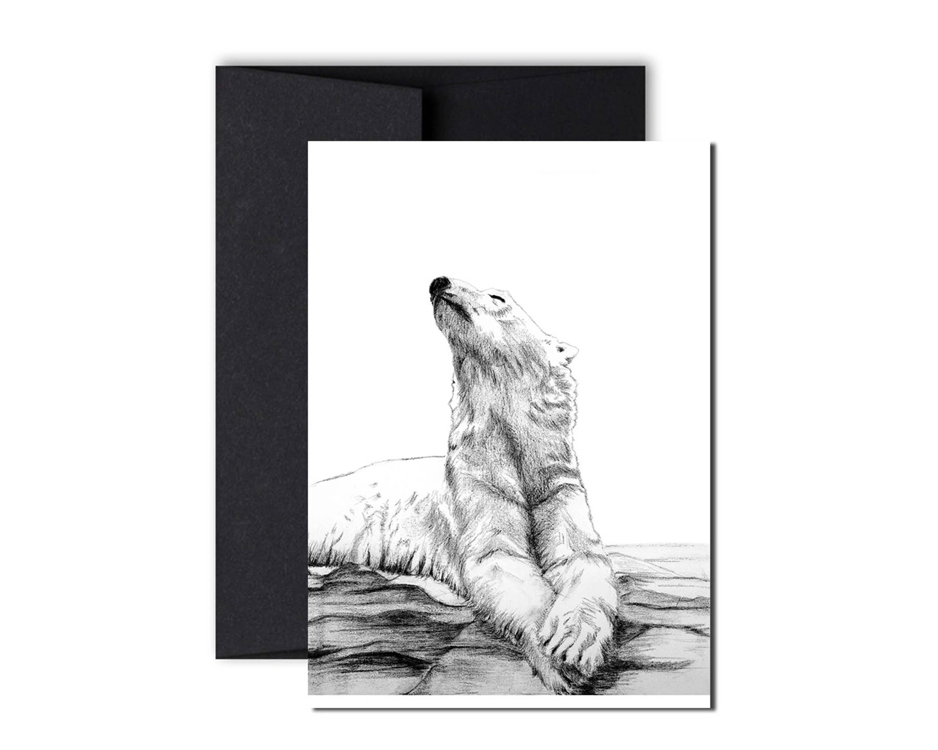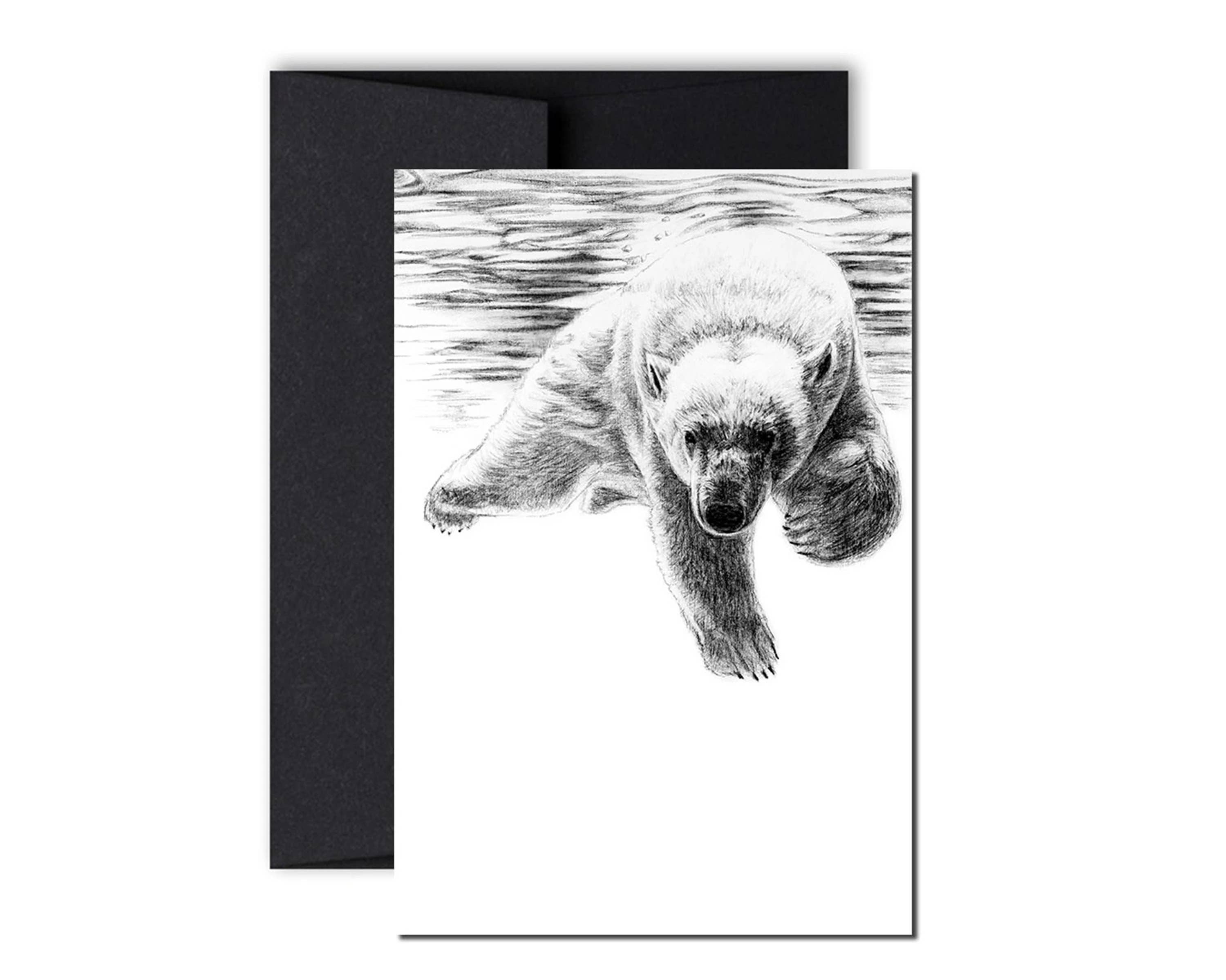 This majestic polar bear greeting card, a symbol of strength and confidence, is a great way to celebrate that special someone.  This big white bear will certainly watch over your loved one. • black and white illustration, blank inside. • black envelope. • inkjet print of an original charcoal drawing. • artistic quality that permits you to frame it like a print for all kinds of deco projects! • acid-free paper, fsc certified. Size: 5x7. See the official illustration (section majestics) available in sizes : 12" x 18" / 30,5 x 45,7 cm20'' x 30'' /50,8 x 76,2 cm24"x34" /60,96 x 86,36 cm Thank you for choosing le nid atelier's creations!.