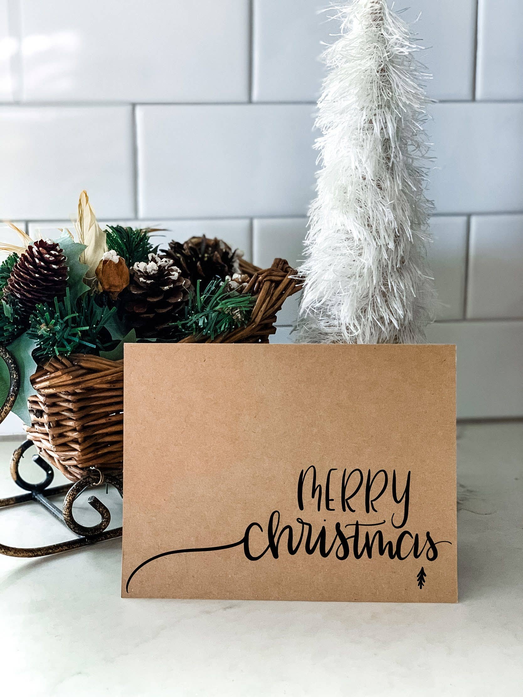 These petite pieces make lovely holiday keepsake cards for everyone on your list - conveniently packed in sets of four. This design features an lettering that reads “merry christmas”. Soft white handmade paper with black letterpress. Handmade paper card with four full deckled edges. Front is letterpress printed. Approximately 3 1/4 x 4 1/4 inches. Comes with four harvest white 4-baronial envelopes, a “set of four” tag, and a small card matte printed with photos and a little information about our process. Wholesale only: MOQ 3