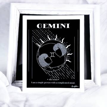 A NOTE FROM H MILLER INK If you’re interested in this art print, please consider ordering through my Faire Direct Link as it’s helpful to my small business > https://faire.com/direct/hmillerink Thank you for your support! ABOUT THE ILLUSTRATION Add a splash of color and humor to your space with a Zodiac-themed art print by illustrator Heather Miller. This vibrant, hand-drawn piece captures the lively and witty nature of Gemini, the third sign of the zodiac. Inspired by birthday treats and cheeky personality traits, this food-themed illustration brings the Gemini spirit to life. Created with colored pencils and acrylic, it’s perfect for astrology enthusiasts or as a unique gift, celebrating the Gemini sign with playful energy. Features: - Available in 3 sizes: 5”x7”, 8”x10”, 10”x10” - Hand-drawn, vibrant illustration - High-quality Giclée art print - Archival pigmented ink - Fade-resistant