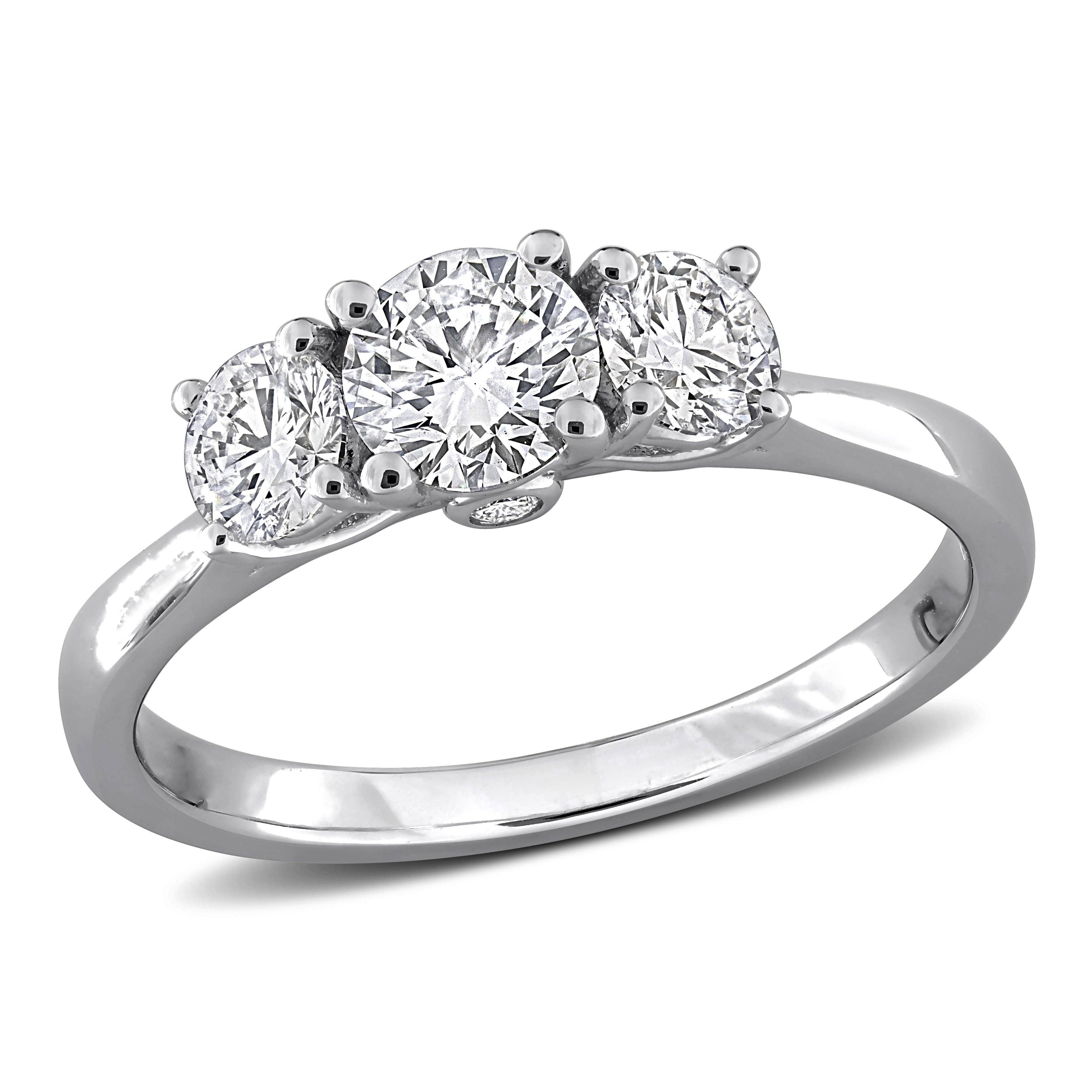 This engagement ring is made in solid sterling silver plated in platinum to help protect against tarnish. The center stone is a 1 carat moissanite and features stunning heart shaped prongs. The rings are certified by GRA. **Rings not available for customization*** no changes for sizes or color We have a 30 Days no questions asked return policy which makes your purchase risk-free. At the end of the day, we want you to be 100% happy. Feel confident when shopping with TwoBirch!! Additional Information Metal Type and Color - Sterling Silver ***center stone minimum specifications: certified moissanite, d vvs1** sustainably created moissanite engagement ring.