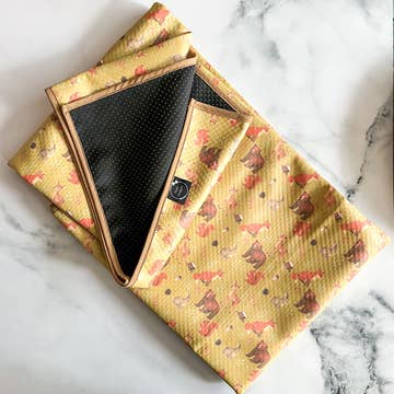 Our Wild Horses Voyager Blanket is a bold, double-sided outdoor blanket featuring pressed floral horseshoes and cowboy boots on a rich chocolate background (Side A), and whimsical pressed flower horses on crisp white (Side B). Oversized (60” x 80”), ultra-lightweight, and water resistant, it’s ready for rodeo picnics, stargazing at the ranch, camping trips, beach hangs, and all your wild outdoor moments. Comes with a cute faux leather holder so you can roll it up and ride. Check out more western style pressed flower artwork in our Wild Horses Collection! Size: 60 inches by 80 inches Material: Oxford fabric Quilted, water resistant (100% polyester) Washing instructions: Cold water machine wash and lay flat or hang to dry Designed in Canada <3 Made in China