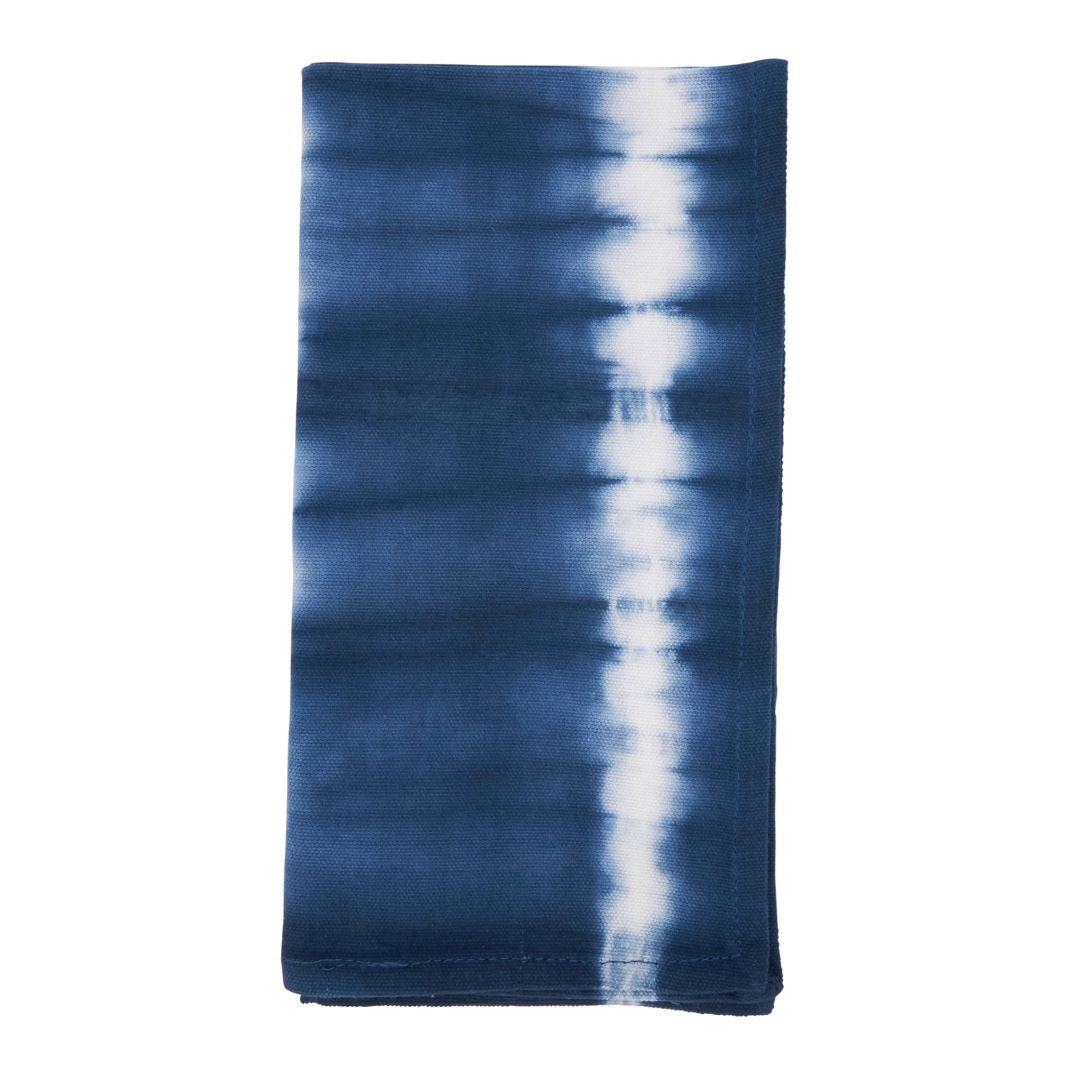 Bring a bit of painterly magic to the table with this set of 4 soft hand-dyed napkins in deep blue hues that mix with pops of bright colors, each telling their own unique color story. 100% cotton,18 inches square with fringed edges. The set of 4 will come folded and stacked and tied securely with a cotton twill tape. Each napkin set comes with a unique magical message on the tag for inspired giving and receiving. Napkins pictured are an example of the variety and variation from piece to piece — each item in a set will be slightly different but share the same colors.