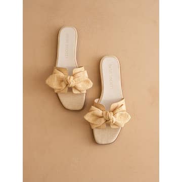 RESORT STAY - Raffia Bow Sandals, Beach Slide, Summer Flat
