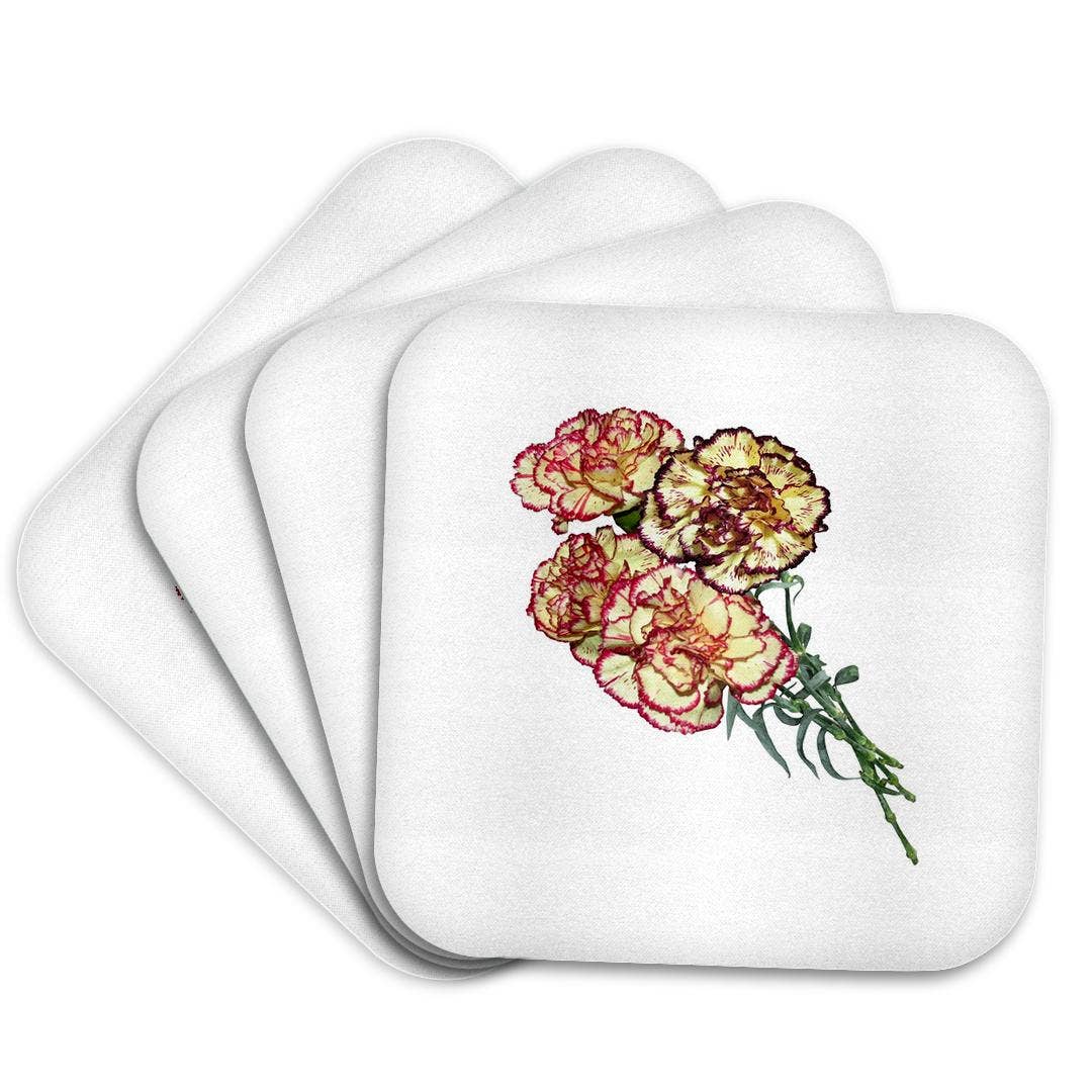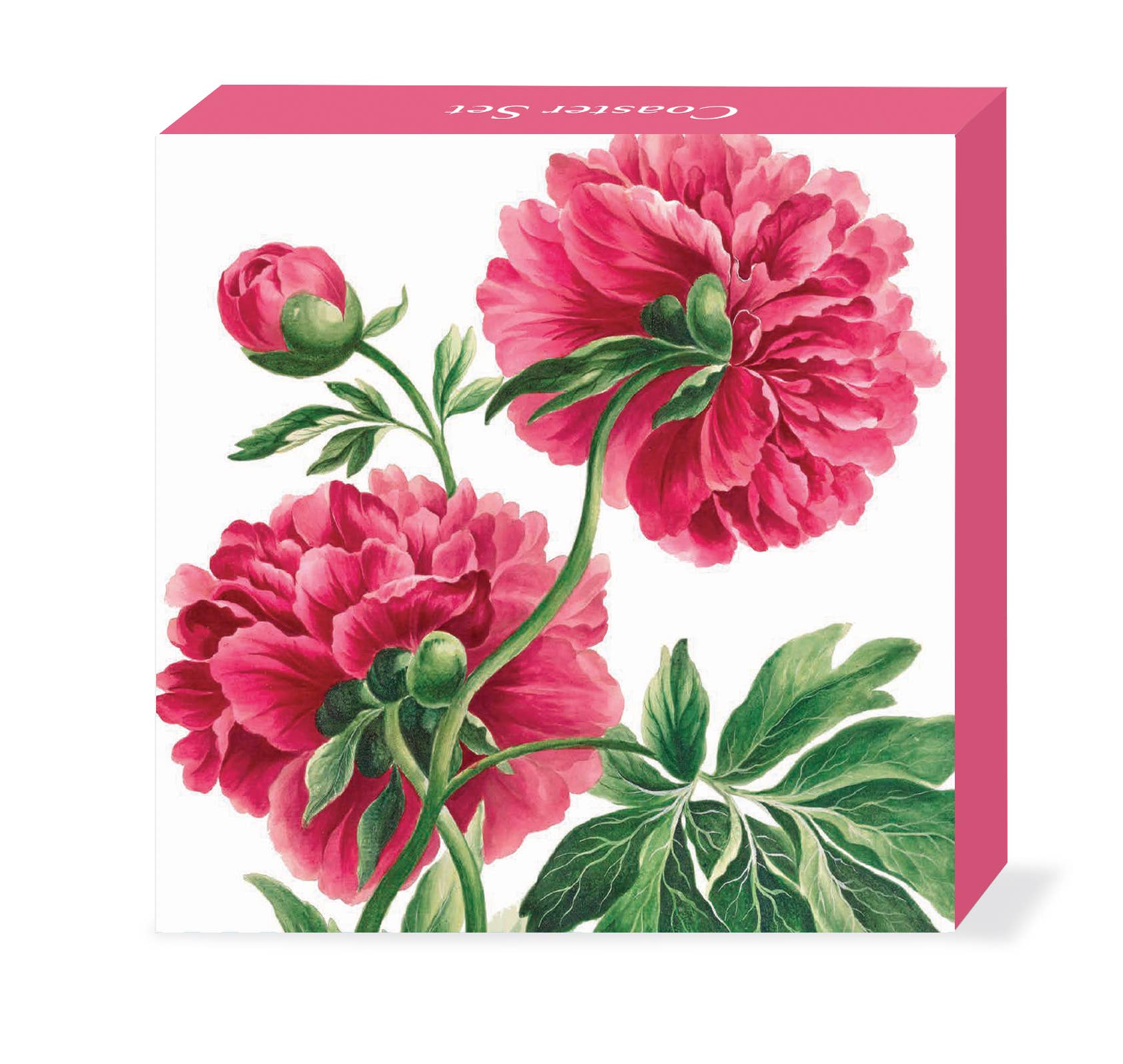 Take your home decor out for a romantic stroll with these charming antique-inspired coasters. A set of four featuring pink peonies against a yellow background, this peony flower pattern will bring a touch of nature and botanical beauty to your life. Perfect for adding a little sweetness to your drinkware! Our coaster tiles are made from a proprietary ceramic blend which means they will absorb the condensation right off your glassware - no more water rings on your tables! 4" x 4" absorbent ceramic coaster tile. Versatile branded cork pad on bottom. Durable UV printed graphics. Natural look tumbled edges. Marbled background. BONUS: Sets of 4 comes with gift box.