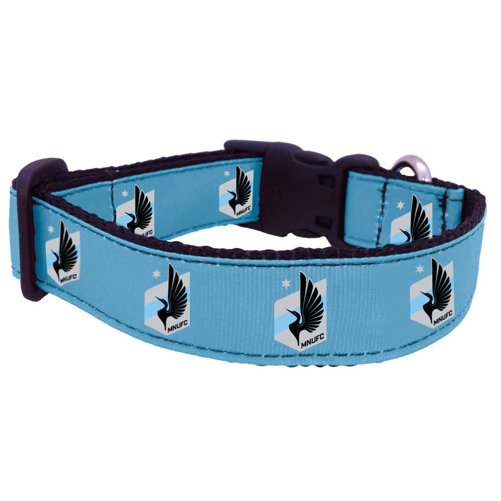 Double stitched grosgrain ribbon sublimated team logos on heavy duty nylon webbing. Completed with top quality hardware. X-Small - 6-12", 3/4" width, Small: 8-12", 1" width, Medium: 12-20", 1" width, Large: 20-30", 1" width.