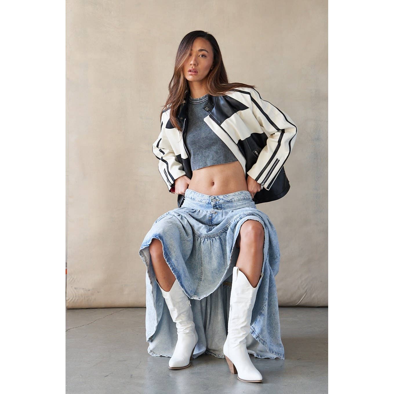 Showstopper- One of a kind zebra print sequin jacket. Full length and lined this jacket is tailored for a fitted look, features a front lapel and hook and eye front closure. Light shoulder pad for structure. Model wears size Small, small batch produced. Styled with our PU mini shorts (still available). Available in white/silver-separate listing. Please let us know if you have any questions.