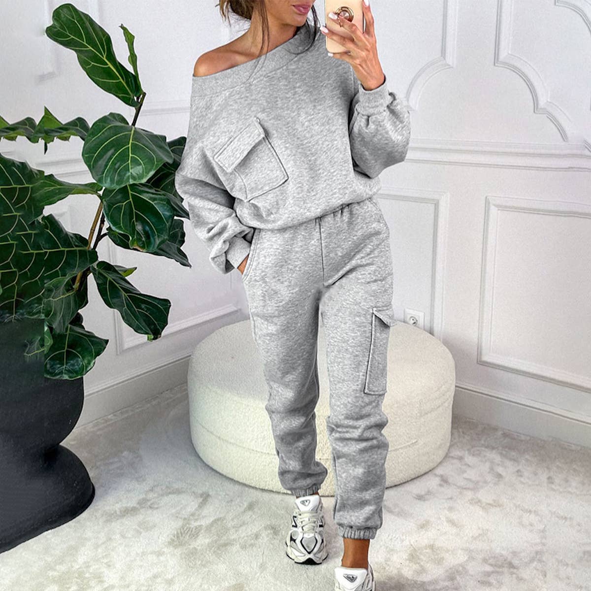 Loose fashion hoodie pant solid color two-piece set