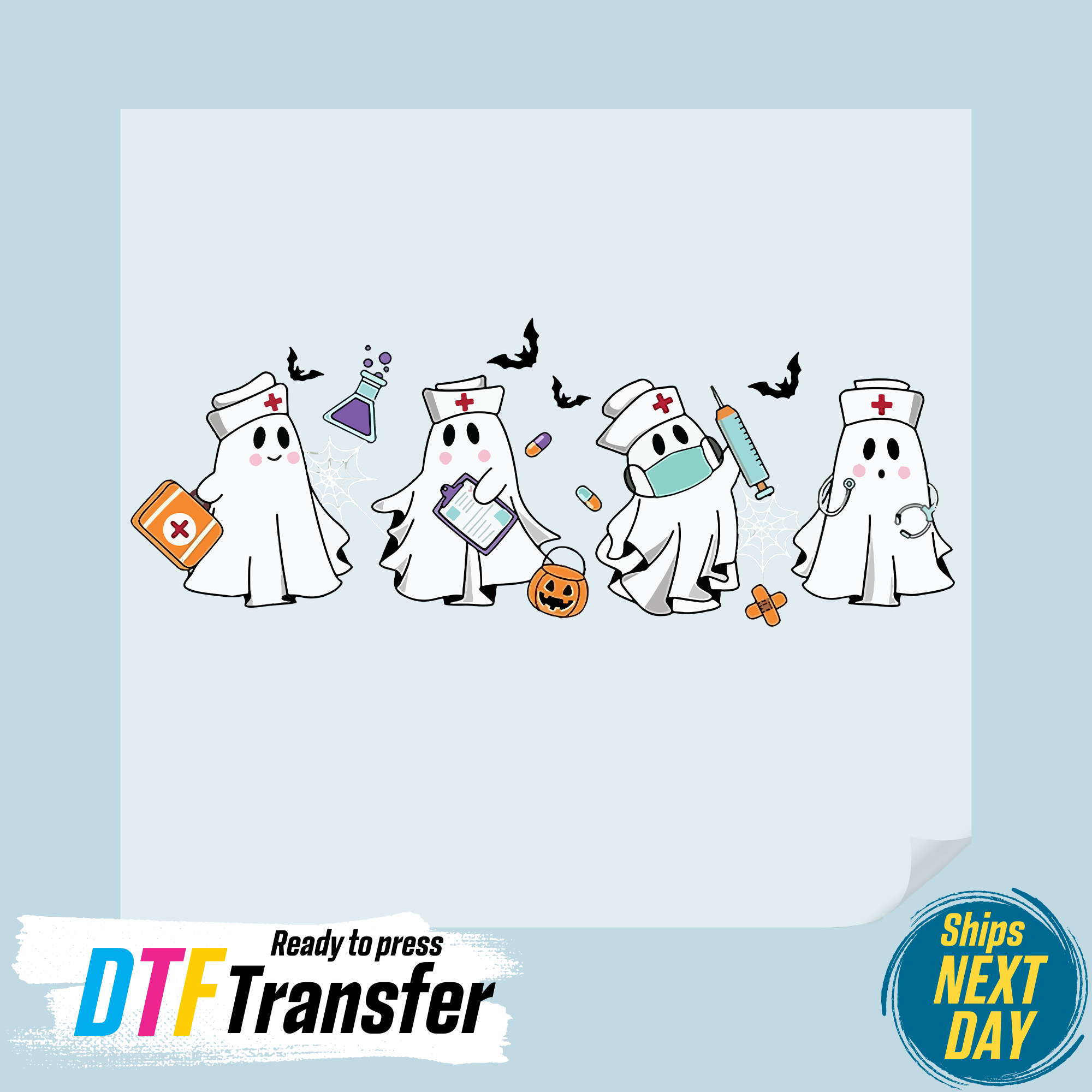 Get ready for Halloween with the Boo Jee Halloween Ghost DTF Transfer! This spooky transfer features a friendly ghost surrounded by bats and a full moon, perfect for adding a touch of festive fun to your Halloween projects. Made with high-quality direct-to-film (DTF) transfer technology, this transfer is easy to apply to a variety of fabrics, including cotton, polyester, and blends. Simply heat press the transfer onto your desired surface for a vibrant, long-lasting design. Whether you're creating custom Halloween t-shirts, trick-or-treat bags, or spooky home decor, the Boo Jee Halloween Ghost DTF Transfer is sure to make your projects stand out. Add a touch of whimsy and charm to your Halloween creations with this adorable transfer. Don't wait until it's too late - order your Boo Jee Halloween Ghost DTF Transfer today and get ready to celebrate Halloween in style!