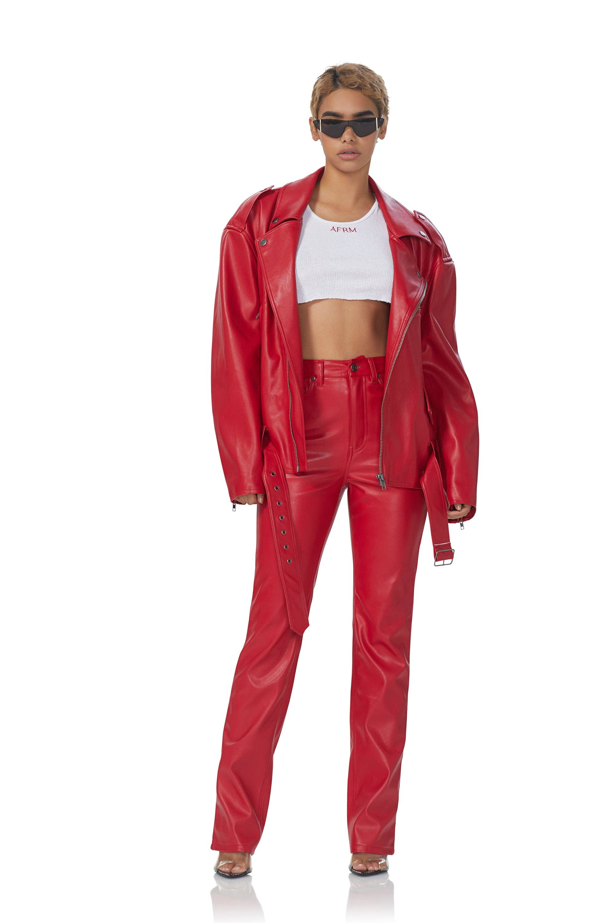 PU LEATHER STRAIGHT PANTS 58% POLYURETHANE 42% POLY MADE IN IMPORT PL3448