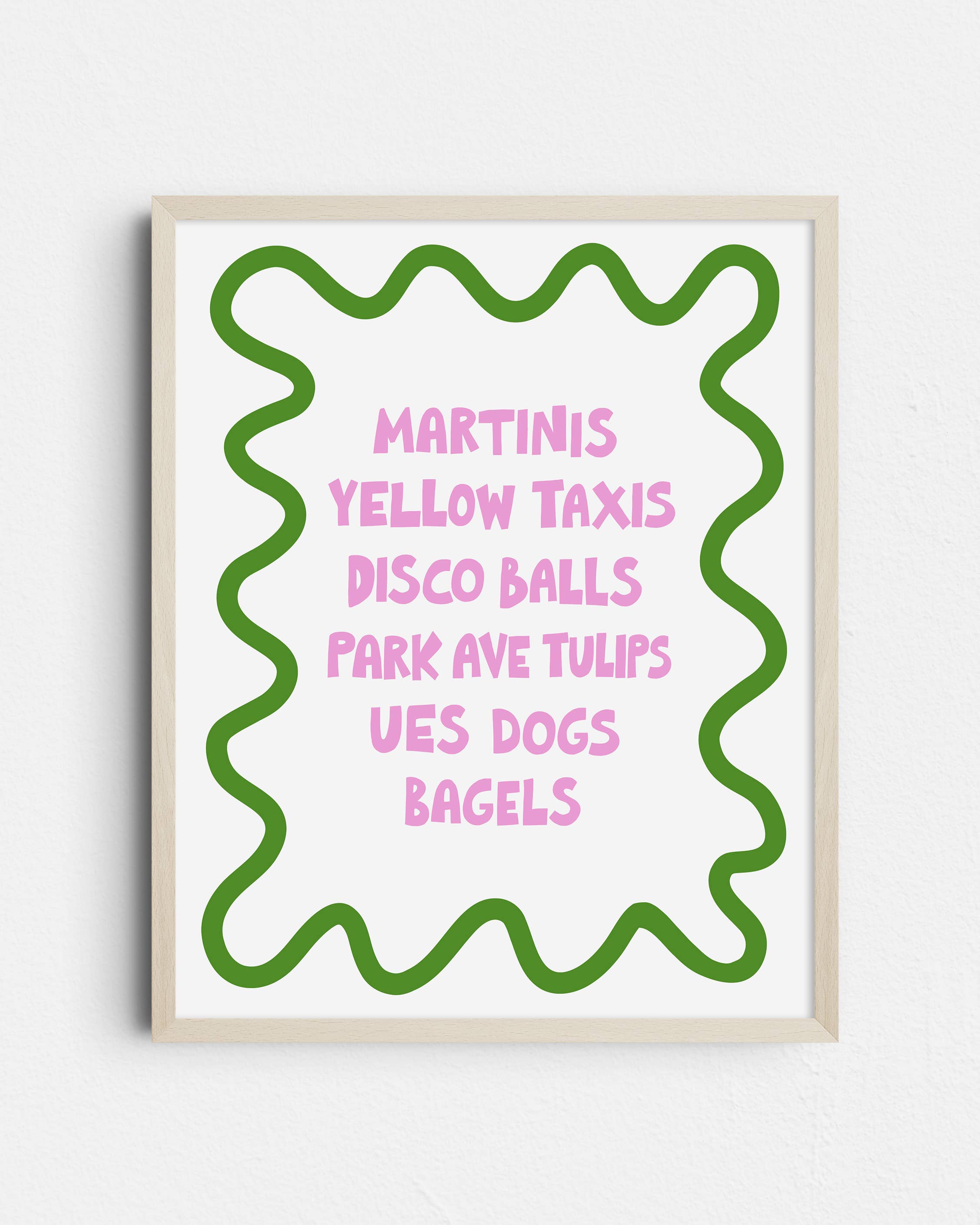 A retro bold striped art print perfect for anyone who's happy place is bagels, walking fast, NY pizza, and shopping in New York. Features hand-painted stripes and printed on a beautiful natural felt paper to give this piece a cool vintage aesthetic. Available in a blue and green colorway (Meadow), a pink and yellow colorway (Milkshake), as well as a navy blue and tan colorway (Maritime). Select additional colors are available upon request. - Printed on high quality natural felt paper. - Additional select colors available upon request. - Each print is unique with slight variations due to the natural paper. - Small white border included around edge. - Packaged in a cello bag with a cardboard backing and a branded sticker on the front. - Frame not included.