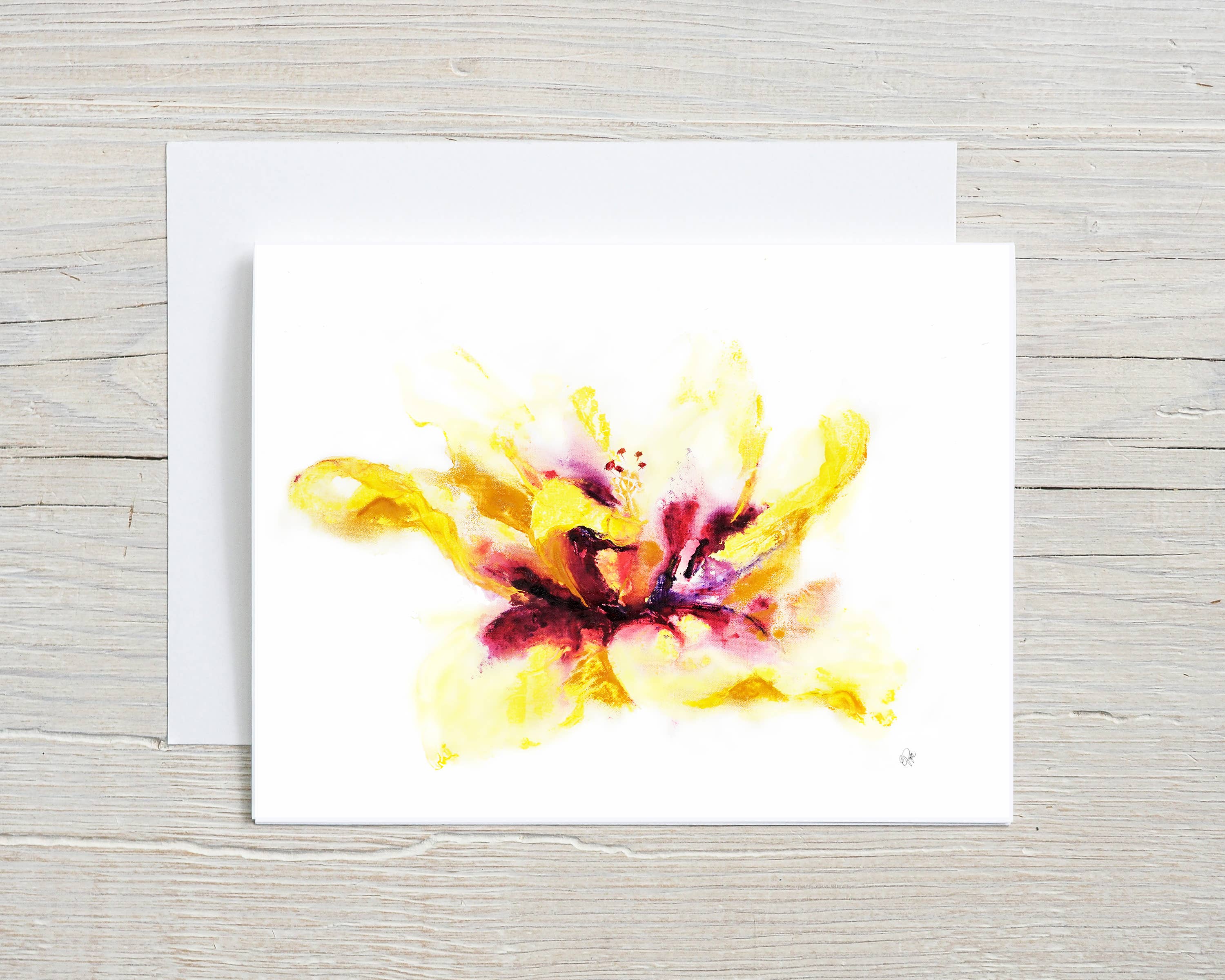 This stunning watercolor red parrot tulip card features an expressive floral design with bold splashes of red, pink, and yellow. Perfect for birthdays, thank-you notes, or just because, this blank card is a beautiful way to send a heartfelt message. Ideal for florists, gift shops, and stationery lovers, this floral art card adds a touch of elegance to any occasion. Card details: * Greeting card measures 4.25" x 5.5". * Card is blank inside. * White envelope included. * Single cards are individually packaged in a clear sleeve * Boxed sets of 6 are packaged in a Kraft box with envelopes - ready to be gifted. Original artwork created by Liz Pope. floral greeting card, watercolor tulip card, parrot tulip art, botanical stationery, blank floral card, artistic flower card, unique greeting cards, flower lover gifts, handmade stationery, boutique gift shop cards