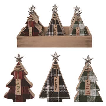 Handmade from up-cycled wood, these charming tree decorations are stained in rich colors of espresso, chestnut, grey, white, and green (NEW). Each piece adds a rustic and festive touch to any holiday decor. Large Trees: 10 inches tall, 7.5 inches at the base Medium Trees (NEW): 7.5 inches tall, 4 inches at the base Small Trees: 6 inches tall, 4.5 inches at the base X-small Trees (NEW): 4.5 inches tall, 2.5 inches at the base Why carry Up-cycled Wood Trees? ❤ Eco-Friendly: Made from up-cycled wood, promoting sustainability. ❤ Variety: Available in multiple sizes and colors to suit any decor. ❤ Handmade Quality: Each piece is unique, adding a special touch to holiday decorations. Offer these beautiful, eco-friendly decorations to your customers and help them add a touch of rustic charm to their holiday celebrations.