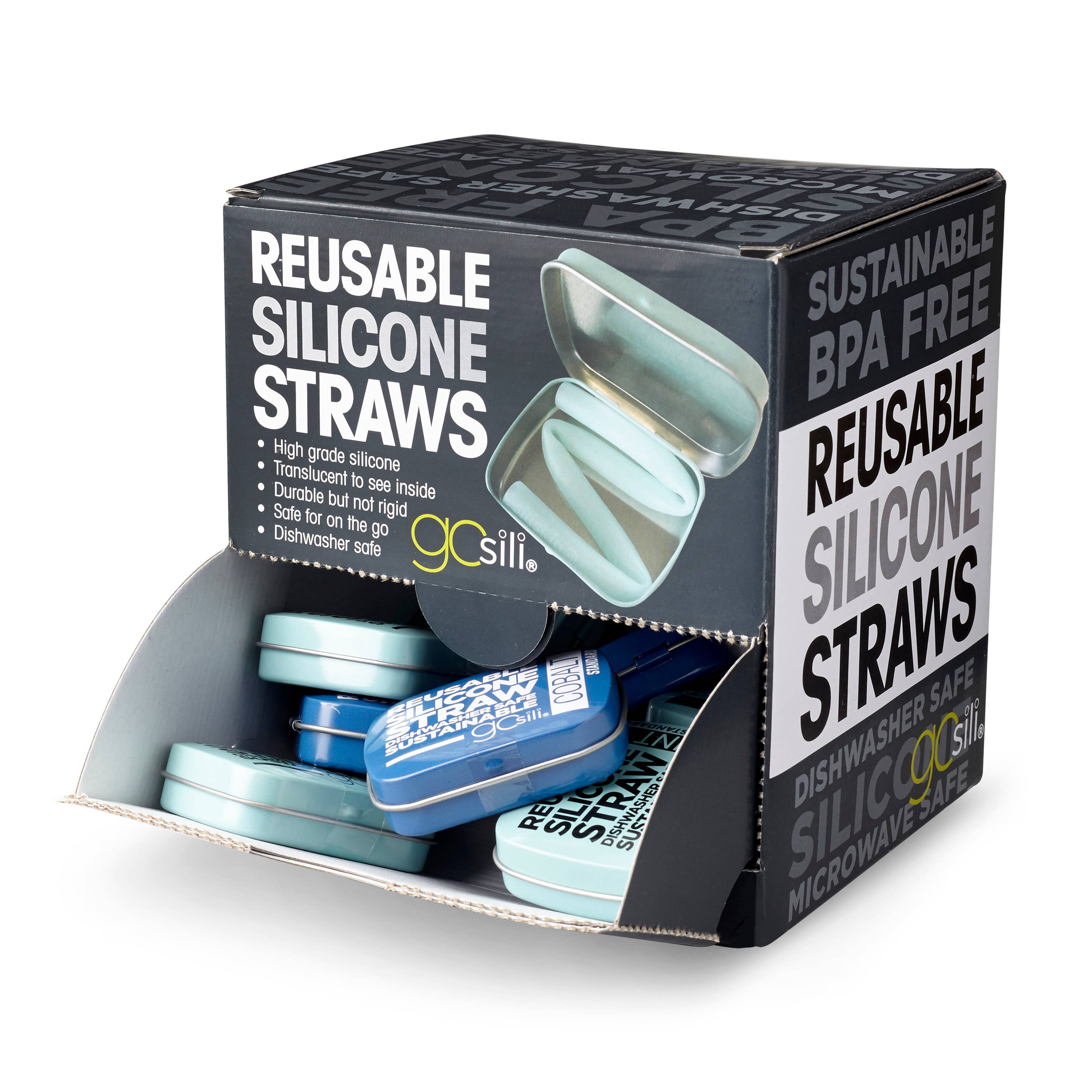Silicone Straw Tin 2pk - 32ct Dispenser Display Mint/Cobalt