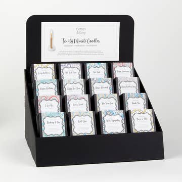 All the sentiment of a Greetings Card wrapped around a thoughtful gift. Set aside precious time for yourself with these handmade pure beeswax relaxation candles, designed to help you capture and cherish quality time. Each candle burns cleanly for twenty minutes, allowing you to focus on the flickering flame, helping you relax and restore your inner calm. Includes 48 best selling 'Just to say...' titles: 3 x Just to say... Congratulations 3 x Just to say... Get Well Soon 3 x Just to say... Good Luck 3 x Just to say... Happy Anniversary 3 x Just to say... Happy Birthday 3 x Just to say... Happy New Home 3 x Just to say... Happy Retirement 3 x Just to say... Happy Wedding Day 3 x Just to say... I Love You 3 x Just to say... Lovely Friend 3 x Just to say... Take Some Time 3 x Just to say... Thank You 3 x Just to say... Thinking of You 3 x Just to say... Well Done 3 x Just to say... With Sympathy 3 x Just to say... You're a Star 1 x POS 1 x Strut Card Trade Pric