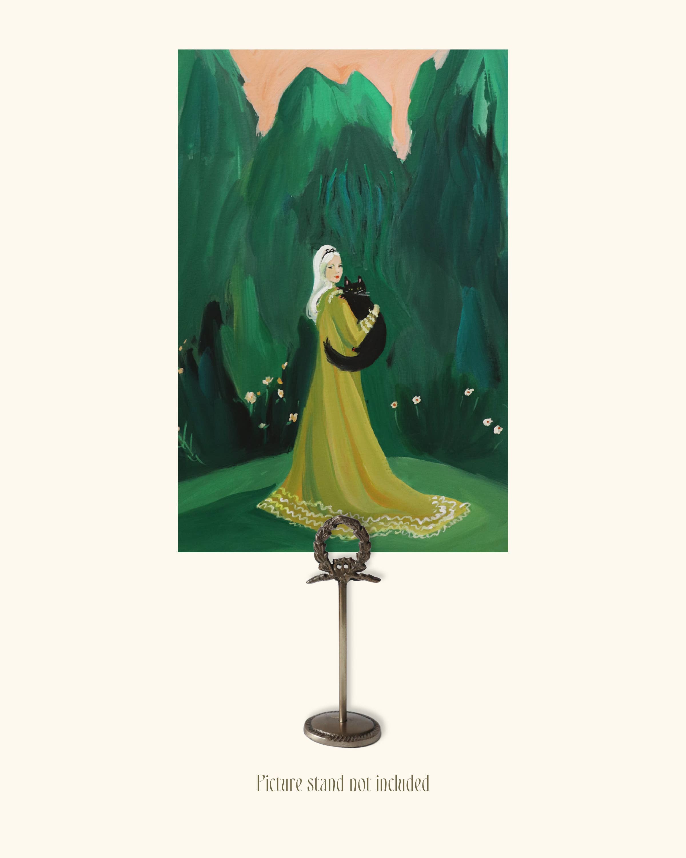 Details: Size: 6"x9" Heavyweight fine art print. Printed on archival quality paper. Our special heavyweight prints do not require framing due to paper thickness. Suitable for propping on shelves, fireplace mantels, place card holders. Perfect for store displays. Original image: gouache on paper. Picture stand not included.