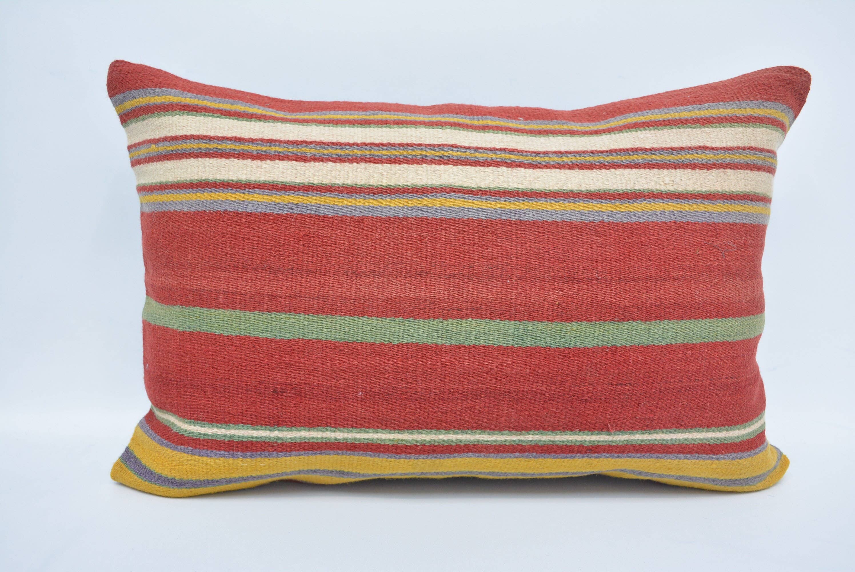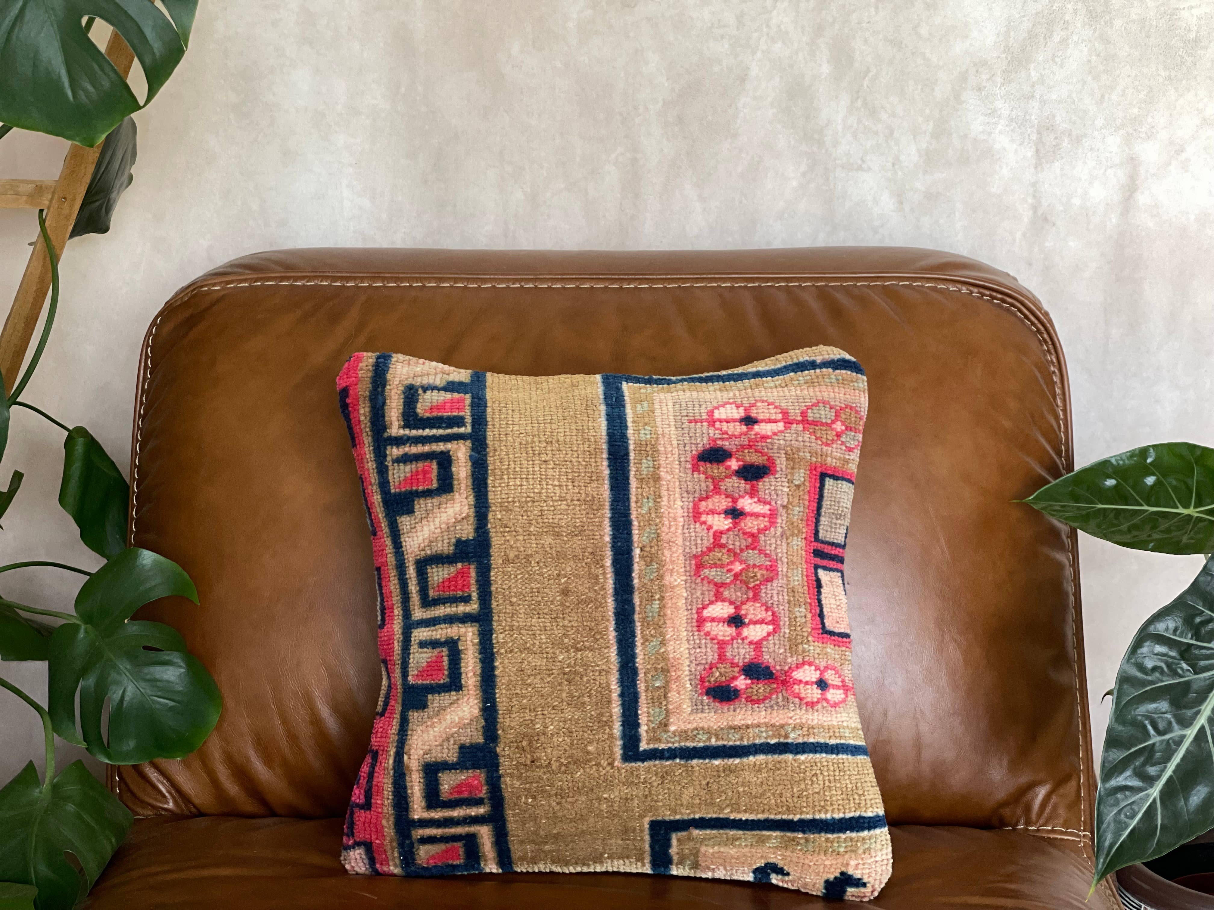 These unique and colorful pillows are repurposed using vintage frazadas from the Cusco area in The Andes of Peru. This colorful pillow was made by repurposing the very famous frazadas woven in the Andes Mountains of Peru. Backed in 100% linen with zipper closure. Would you like a custom size pillow? Let us know, We customize products per request. 18"x18" 100% hand spun wool Insert not included Spot clean or Dry clean only Slight imperfections may occur due to the vintage nature of this product, naturally enhancing its character and personality.