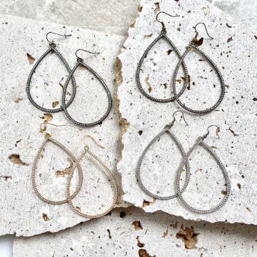 These earrings come with two sets on a single card, making them a fun giftable item. Available in triangles, circles, squares, and a wide variety of stones and beads. We recommend ordering them as a Seeds Pack to get the free display. No choosing stones. These come completely random. Features: - Lead and nickel free ear wires - Brass shapes - Genuine stone beads - Made in Minnesota
