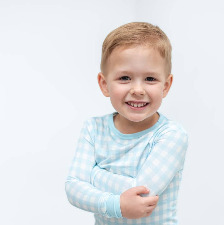 Our crib sheets are made from bamboo which is soft to the touch and holds up well over many uses and washes. Both lightweight and breathable, the fabric promotes a cool and comfortable night’s sleep for your little one. Pair with our Blue Gingham Bamboo Swaddle Blanket, Romper or 2-Piece Toddler Set! The Blue Gingham set would make a perfect baby shower gift or registry present. Details: * Fits standard crib mattresses 28" x 52" * 70% bamboo, 30% cotton Care Instructions: * For best results, wash on gentle cycle and tumble dry low. * Do not bleach.