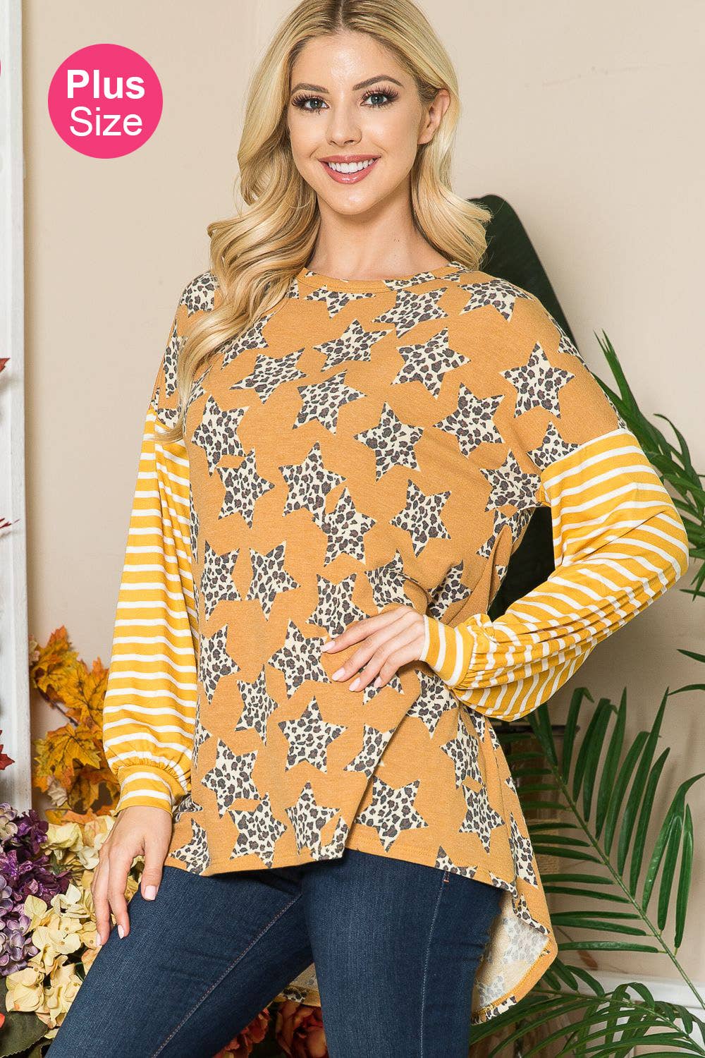 ASYMMETRICAL RUFFLED TUNIC TOP Fabric Content: 96% Rayon, 4% Spandex Sizes: XL-1XL-2XL-3XL Size Ratio: 2-2-2-2 Made in: USA Care Instruction: Hand Wash
