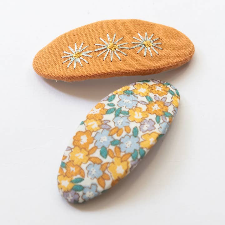 Wholesale Triangle Embroidered Floral Snap Hair Clips | Green&Mustard