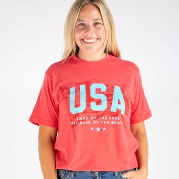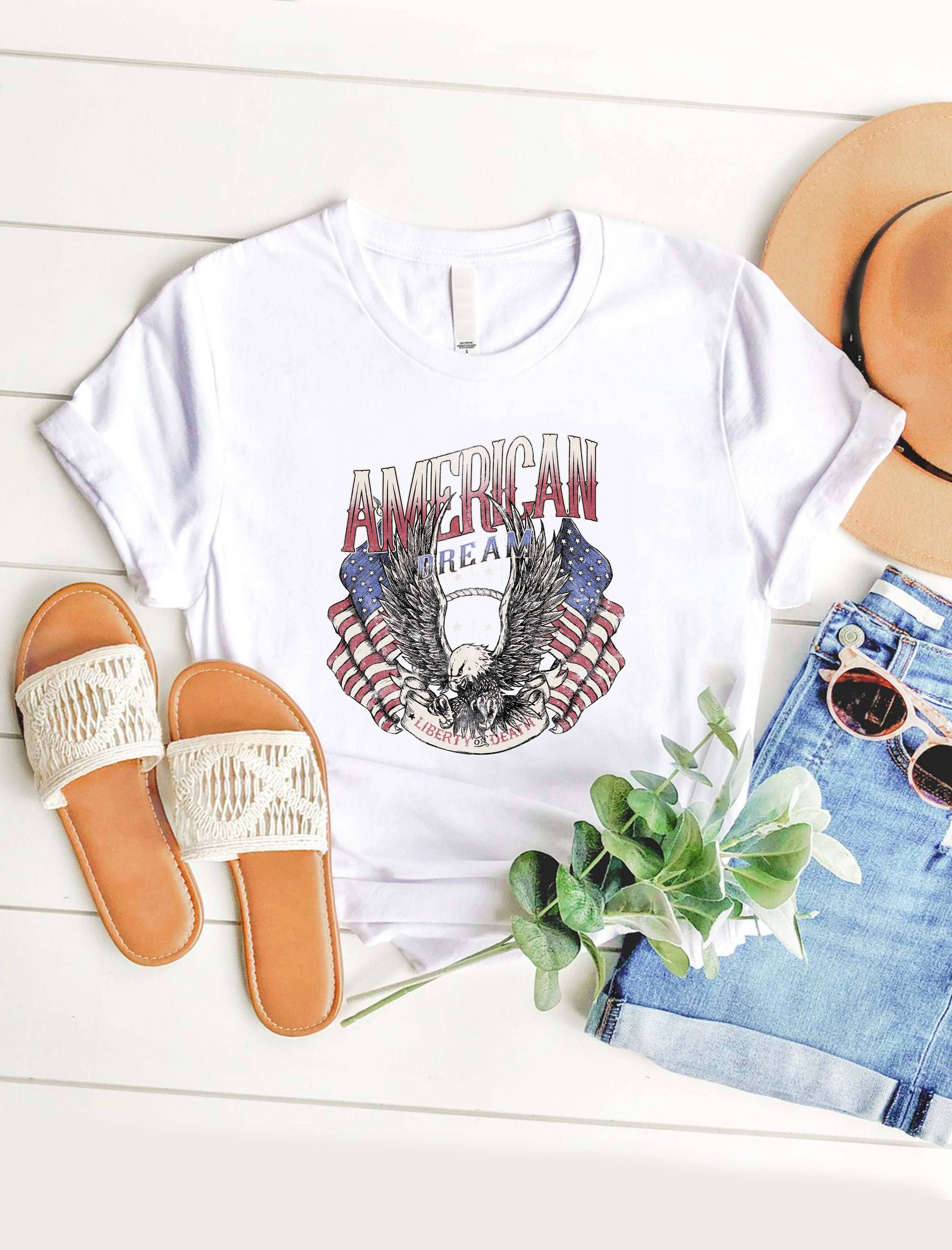 Aesthetic: Casual and Western Care Instructions: Machine wash Fabric: 100% Cotton Fit: Unisex Neckline: Crew neck Occasion Theme: Everyday and Fourth of July Occasion: Everyday Season: Core Sleeve Length: Short Sleeve Product Language: English Weight: 172.37 g (6.08 oz)
