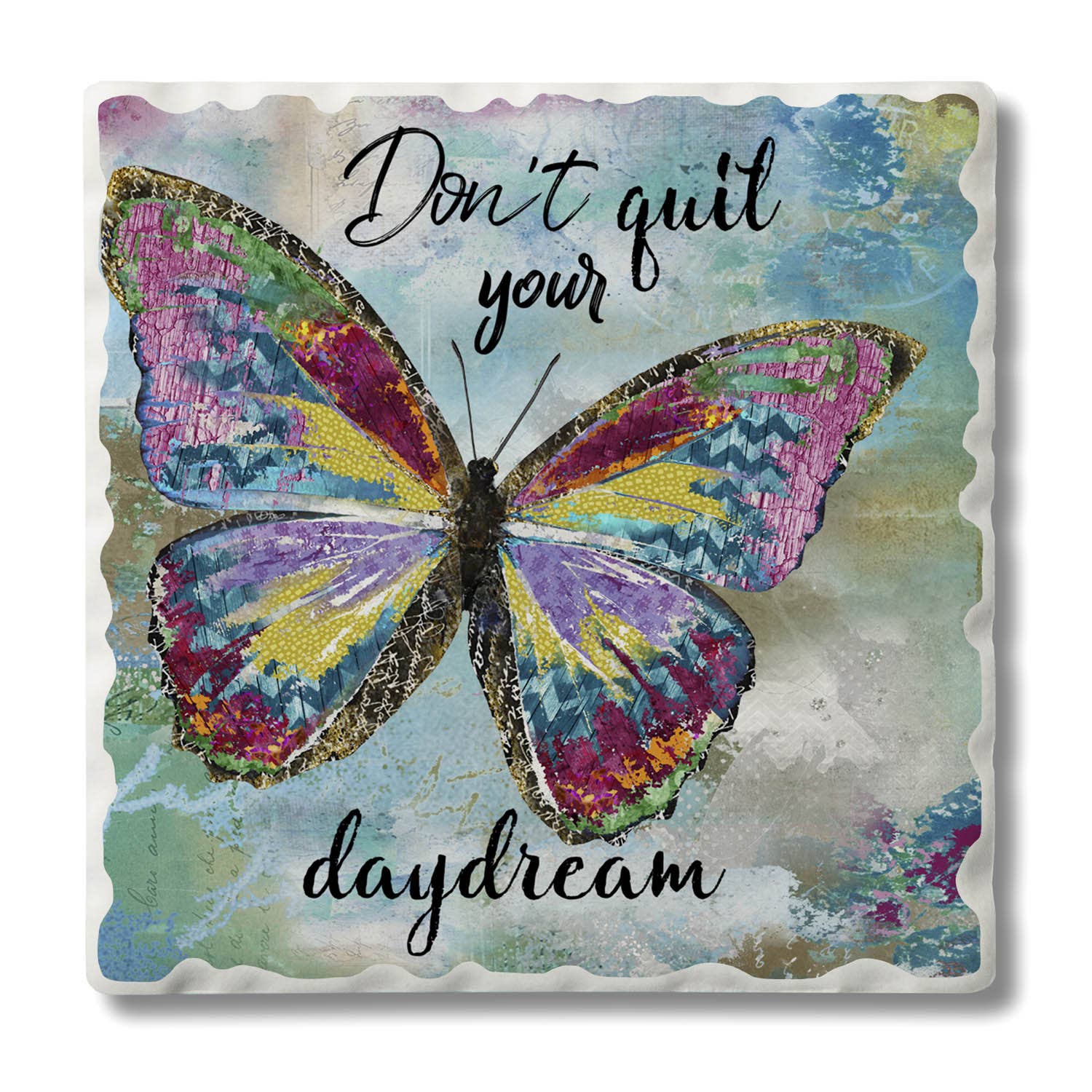 "Bird on Letters" 4pk Asst. Absorbent Stone Coasters 4.25"