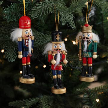 Bring festive cheer to your holiday decor with this playful set of 4 Nutcracker Ornaments. Each charming figure adds a touch of color and tradition to your tree, making your celebrations merry and bright. Perfect for gifting or keeping your holiday spirit alive year after year! . Set of 4 Ornaments . Size | 5 inches . Material | Painted Wood . Imported Please note: Due to the hand-painted nature of this item, variations in color and design may occur.