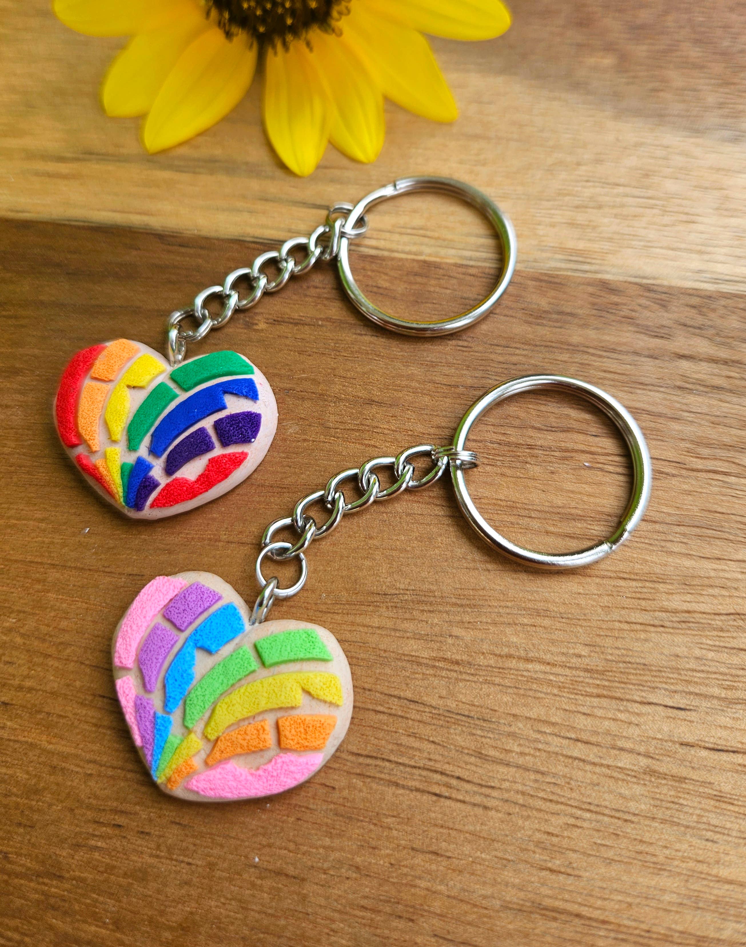 Hand-sculpted polymer clay pan dulce- concha keychain. Concha size: 1.25 inch x 1.25 inch Keychain length: 3.25 inch Each comes with our packaging/ display card. All items are hand-sculpted so multiples might slightly differ THIS IS NOT A WHITE-LABEL PRODUCT. MUST BE SOLD WITH OUR BRAND LABEL.