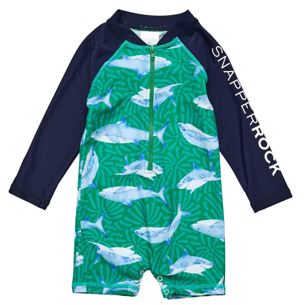 Baby Rashguard One Piece Swimsuit - Sherman the Shark (Blue)