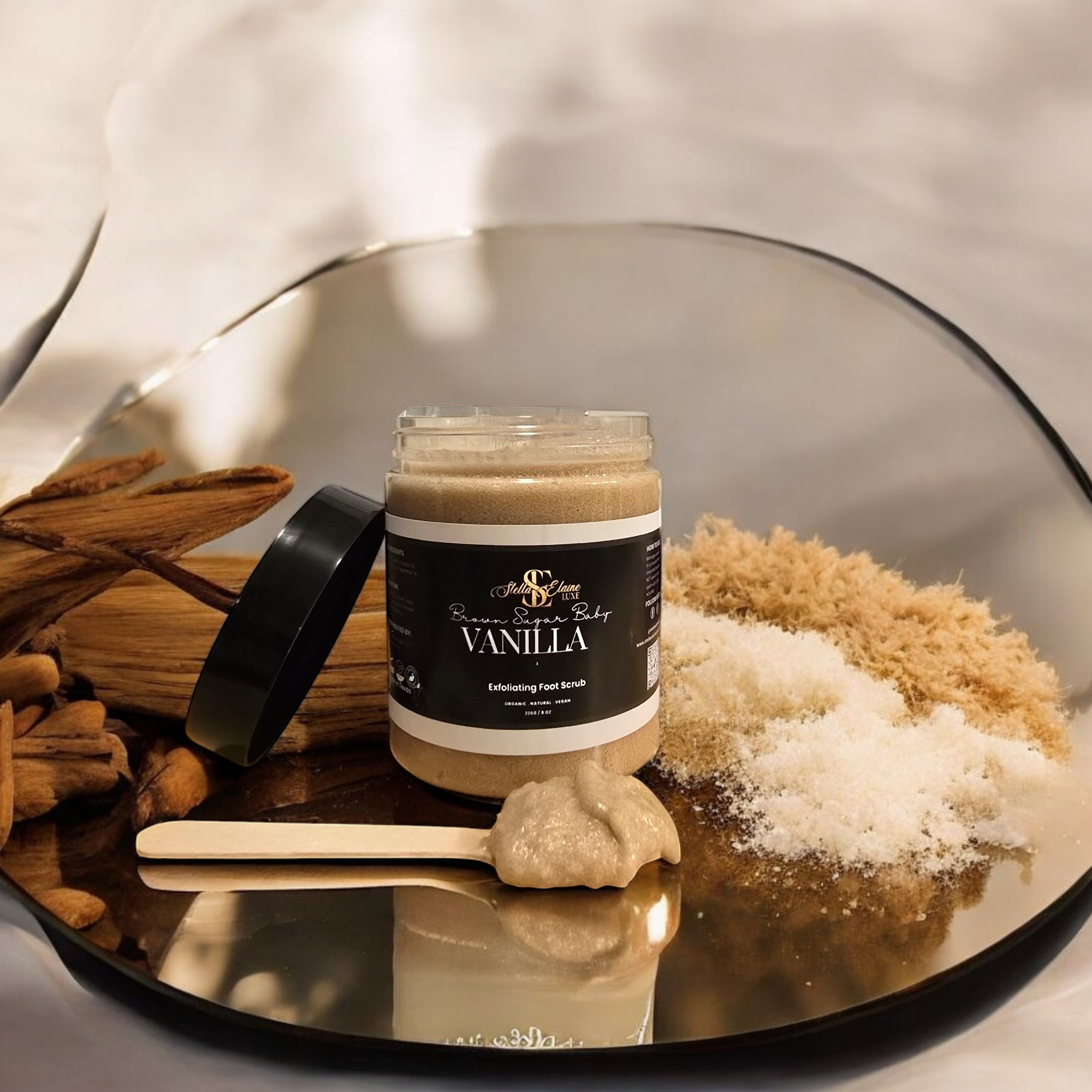 Indulge yourself with Thirsty Feet Foot Fluff in Rainbow Confetti Brown Sugar! Includes an 8 oz jar of warm vanilla scented exfoliating foot scrub and moisturizer with a snap top lid and a wooden spoon to help keep wet fingers out. Moisture rich ingredients leave your feet looking and feeling amazing! Say goodbye to harmful chemicals and hello to natural ingredients! Made with brown sugar, pure African shea butter, pure coconut oil, and pure cane sugar! Containing vitamins, A, E, and F which feed and nourish the skin providing many benefits! Exfoliating power removes dead skin cells and polishes toenails. It's also good used as a body scrub for hands, elbows, and knees. Brightens up old tattoos as well! made in small batches with no essential oils, no harmful fragrances, and no added preservatives. Get those Thirsty Feet Hydrated! A Treat For Your Feet!