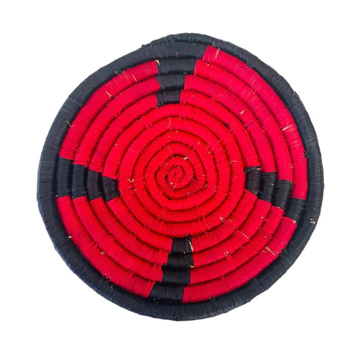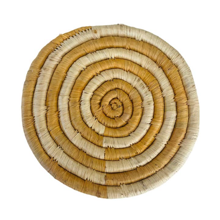 Handmade in Kenya from banana leaves. These trivets add a fun touch to a kitchen or for a plant lover. Each purchase supports the artisan who handcrafted the piece. These are handmade items so each one is similar but not exact. One per order. Approximately: 6” Round