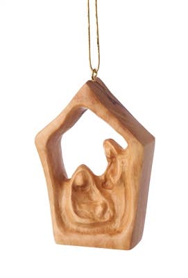 - Dimensions: 3" - Handcrafted ornament - Crafted in Bethlehem by the Giacaman Family - Made from sustainably pruned olive wood (no trees cut down) - Wood is dried for over a year to enhance grain patterns - Features natural cracks and grain variations for a unique look - Thoughtfully designed as a heartfelt addition to holiday decor