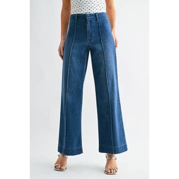This casual jeans are unique with seamed detail. The creative seams enhances a structured silhouette. This straight jeans are flattering to bring a slender leg look. The high waist is easy to pull on for a convenient wearing. Western jeans for women wholesale are fashion-forward and durable.