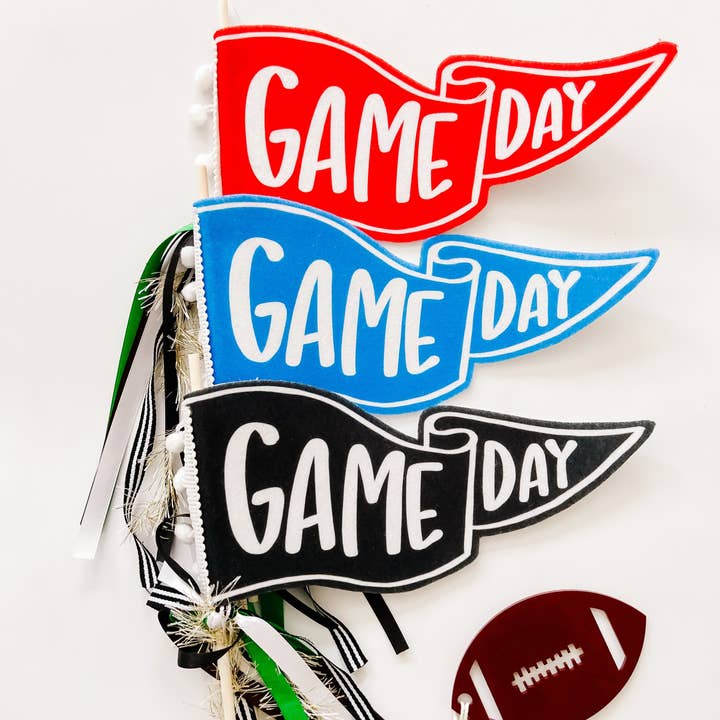 Felt pennant with attached wooden towel. Ribbons tied at end. Perfect addition for your football parties or fall decor! Production time: 10-14 Business Days Please note due to the handmade nature of this product, slight variations may occur