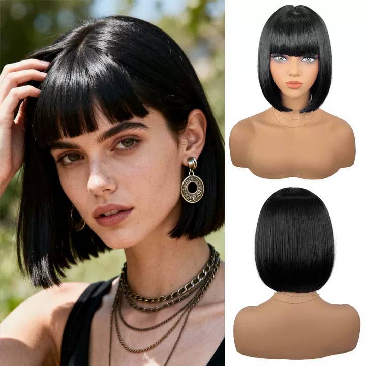 This straight bob wig with bangs offers a chic, modern style perfect for everyday wear or cosplay events. Made from high-quality heat-resistant synthetic fibers, it provides a soft, natural look and feel. The short bob cut frames the face beautifully while the bangs add a touch of sophistication. With a comfortable, breathable cap and adjustable straps, this wig ensures a secure fit all day long. Versatile and stylish, this wig is ideal for transforming your look effortlessly. Kewords: Straight Bob Wig, Short Bob Hairstyle, Bob Wig with Bangs
