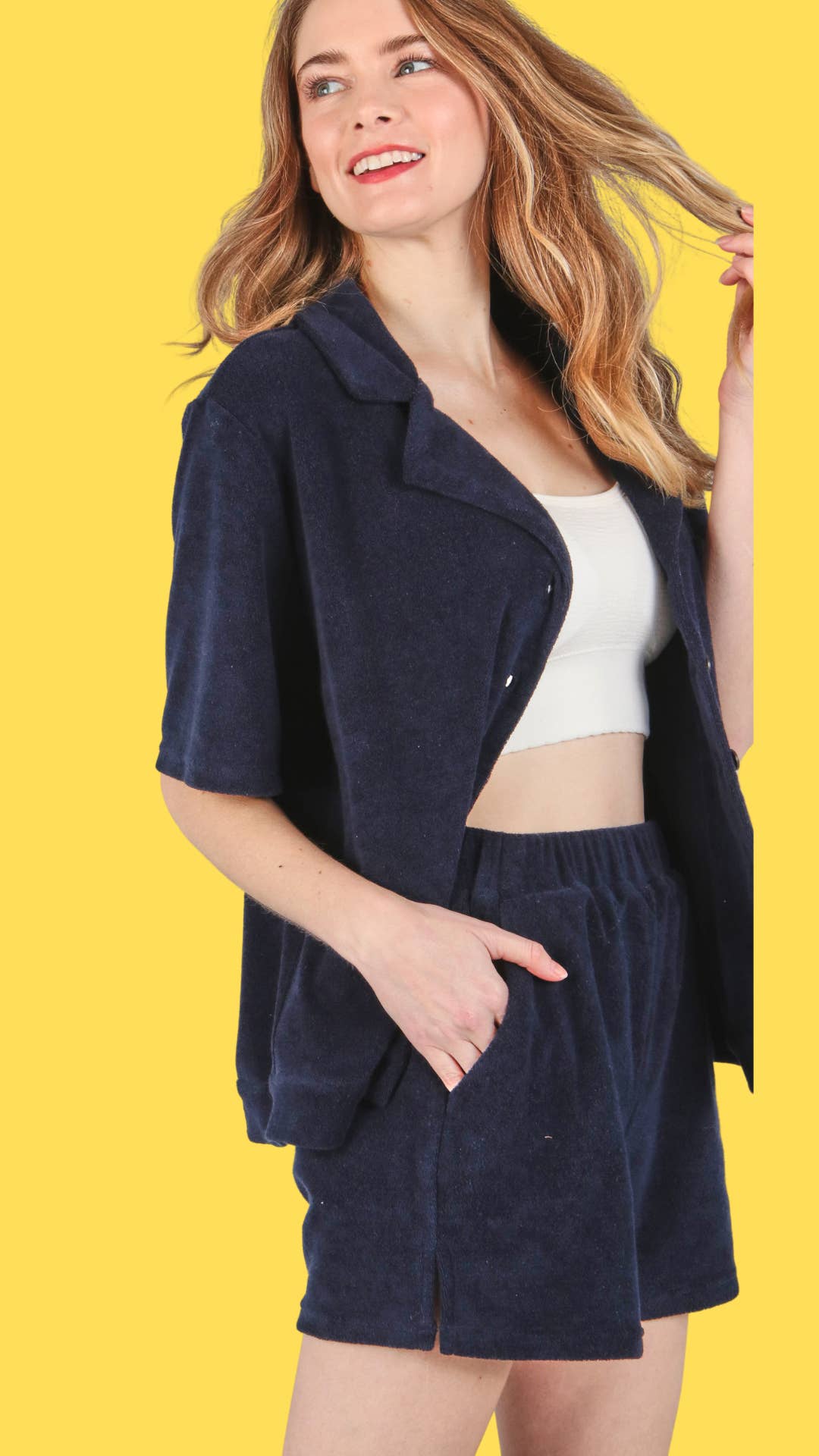 Experience the perfect blend of style and comfort with P.S Kate's Towel Terry Shorts. These shorts, crafted with a soft, solid towel terry material, are ideal for everyday wear. The casual aesthetic makes it a versatile piece for your spring/summer wardrobe, and the contemporary fit ensures you stay comfortable all day. Plus, it comes with a handy pocket for your essentials. To maintain its quality, please follow the care instructions and machine wash. Elevate your casual wear with P.S Kate.