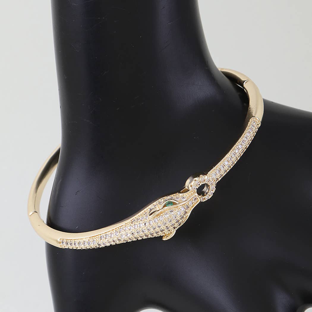 Stoned Enamel Elephant Hinge Bangle Cuff Bracelet