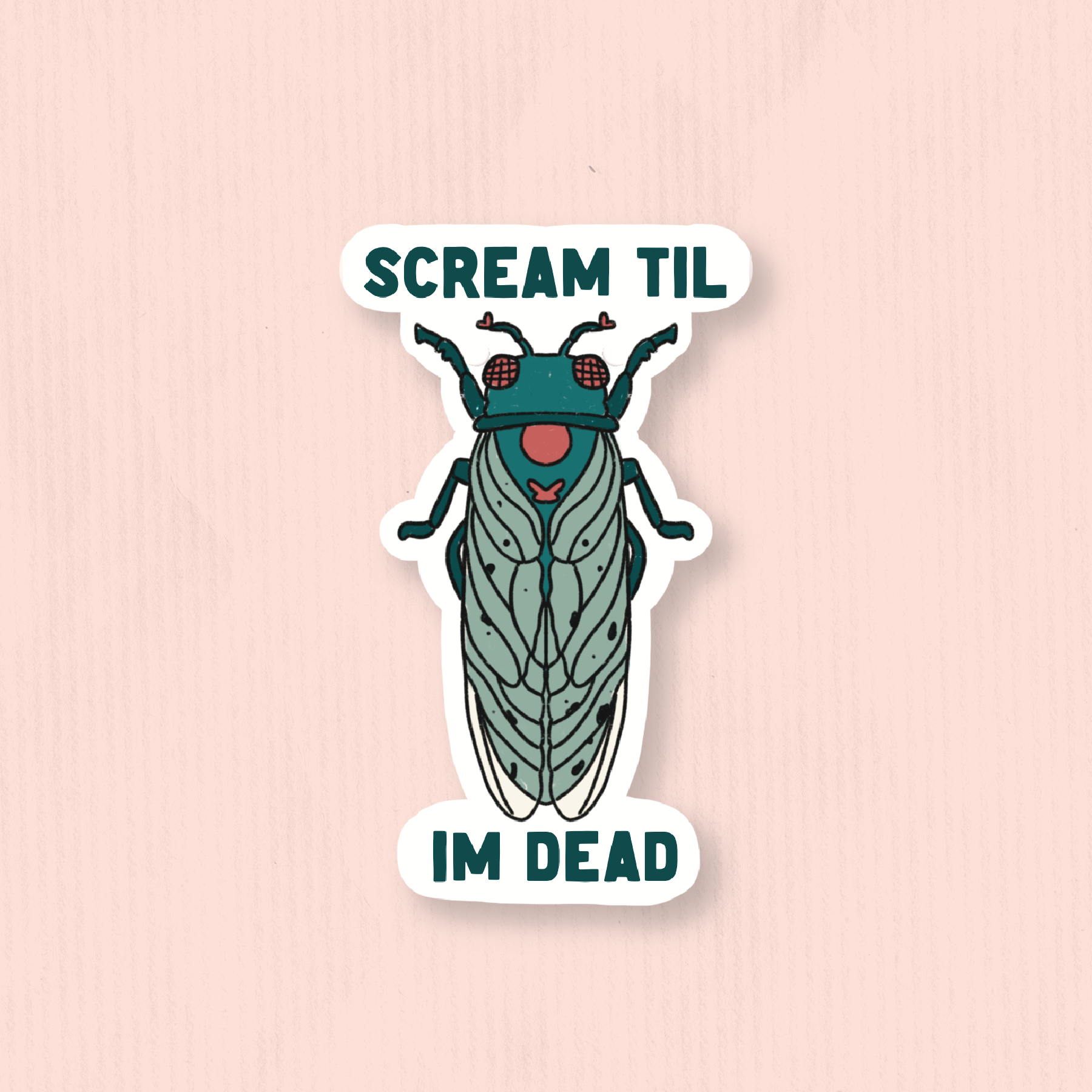 Celebrate these iconic insects! Design inspired by the 2024 Brood X cicada emergence in Illinois, perfect for naturalist and entomology nerds, or those that want to poke fun at their constant screaming calls. - Printed on sturdy matte vinyl - Waterproof and weatherproof - Black and green bumper sticker measures 9x3.5 in - kiss cut edge for easy peeling and application