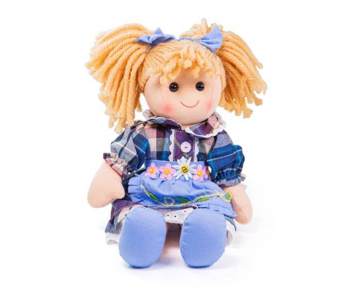 Meet Olivia! Olivia Doll is ready to meet her new little best friend! Olivia is a soft and cuddly ragdoll dressed in a super sweet outfit. Olivia’s hair comes tied up in cute bunches and she wears her very own Bigjigs Toys blue party dress and matching blue shoes. Olivia Doll’s soft material makes her the perfect toddler doll as she’s only 30cm tall and is gentle on busy little hands. Olivia the ragdoll can easily fit into bags, prams, cots, beds and cars so can be taken anywhere at any time! If your little one has a passion for fashion, Olivia’s wardrobe can be switched up with any of the Bigjigs Toys doll clothes. Olivia Doll conforms to current European safety standards. Olivia Doll product features: Soft plush ragdoll Medium size - 30cm tall Removable clothing Suitable from birth