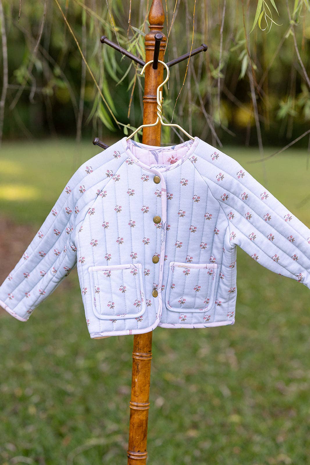 Wholesale Quilted Velvet Jacket in Frost and Holiday Dot Stripe | Girls Jacket