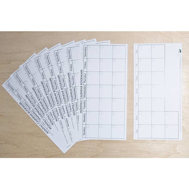 Simple Monthly Calendar Bookmark. Fill in important dates and reminders, and be reminded of what's coming up in your week each time you open your book! Half the month is on the front then flip for the other half on the back! *These are PRINTED Bookmarks which will be shipped to you* Bookmark Info: - double sided. - Space for: x1 Month [buy 12 to have 1 full year]. - Each bookmark is 3.5” x 7” - Printed on recyclable card stock [see my other bookmarks and journals for other options too!] *The more you buy the cheaper they each are. *Mix & Match, just tell me how many of each and which ones (as long as the total quantity matches what you ordered.