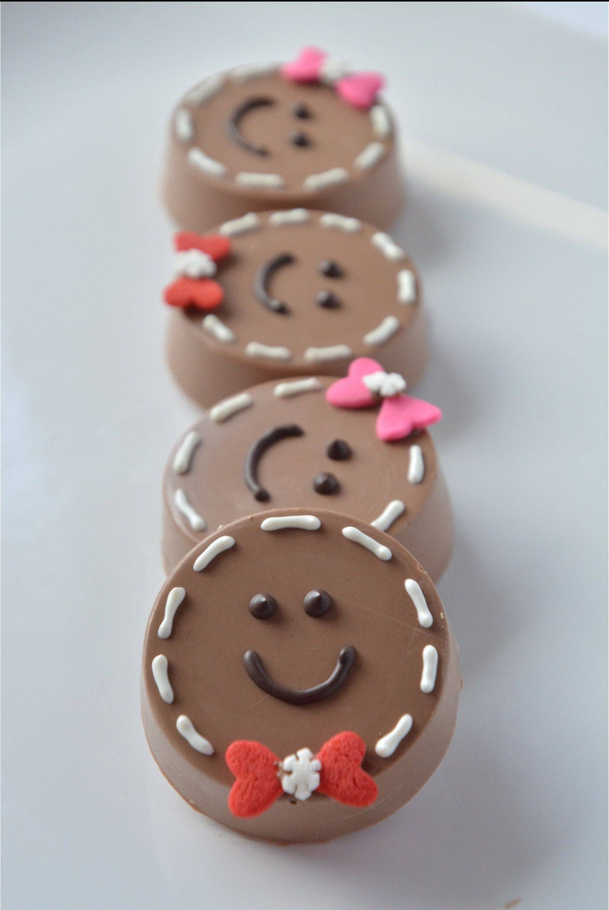Amazing chocolates that are cute, unique and great quality. We love everything we have purchased and it flies off the shelves of our little bakery/cafe. Thank you for making such a great line of chocolates!